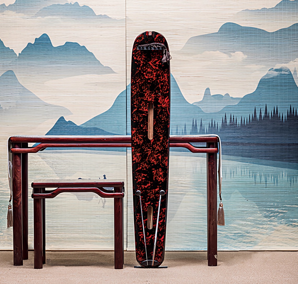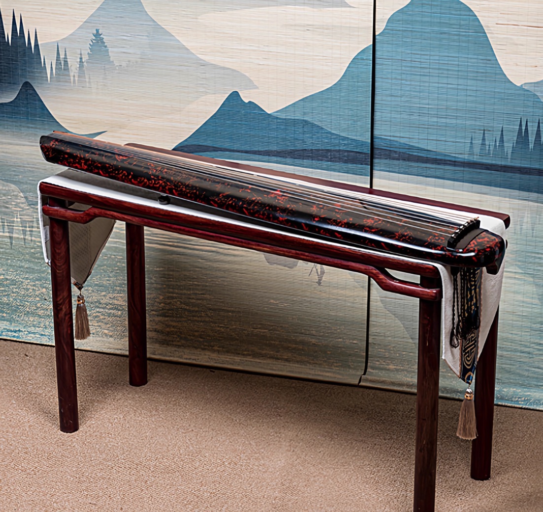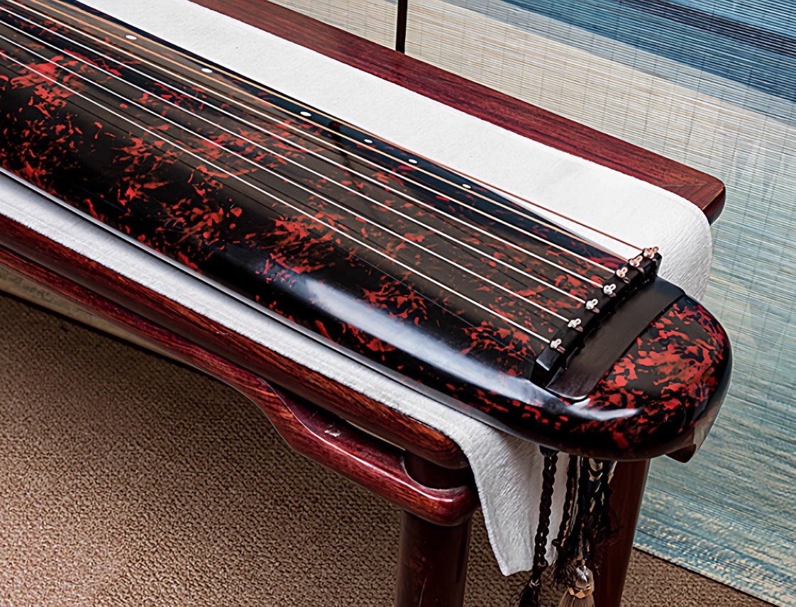 - Guqin Chaotic style Cinnabar red Old cedar wood Chinese string instruments