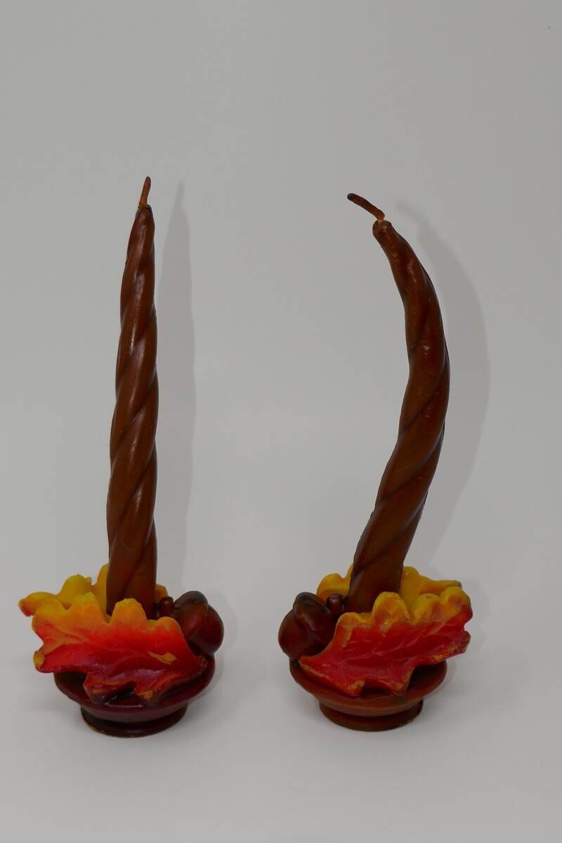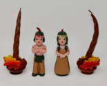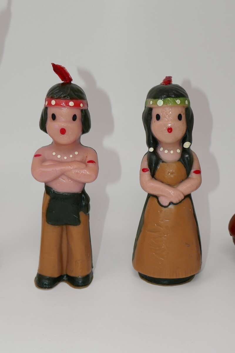 The Gurley Thanksgiving Candles feature a Native American theme with a colorful design, making them a decorative and seasonal addition to your holiday celebrations. The boy and girl measure approx. 5.5" tall and the twisted taper candle with an acorn and oak leaves at the base measure approx. 7.5" tall. These have some wear and the tall ones have curved. Made in the United States in the 1950s, these specialized candles are a vintage collectible that adds a touch of nostalgia to your Thanksgiving table decor. See photos for item condition, this is a picture of the actual item. All reasonable offers considered!! **Payment** We do expect payment within 48 hours of the purchase. If for some reason you need a couple of extra days, please let us know. **Feedback** Once you have received your item, if you are satisfied, please leave feedback. We are happy to leave feedback for you after you have left feedback for us to let us know that you have received your item and the transaction is complete. Please contact us before leaving feedback if there is a problem. **International Buyers ? Please Note** Import duties, taxes, and charges are not included in the item price or shipping cost. These charges are the buyer's responsibility. Please check with your country's customs office to determine what these additional costs will be prior to bidding or buying. Check out our store for more deals!!