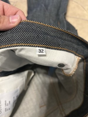 - Gustin 32X34.5 Selvedge Jeans California Mens Skinny Raw Button Fly 116699 Blue