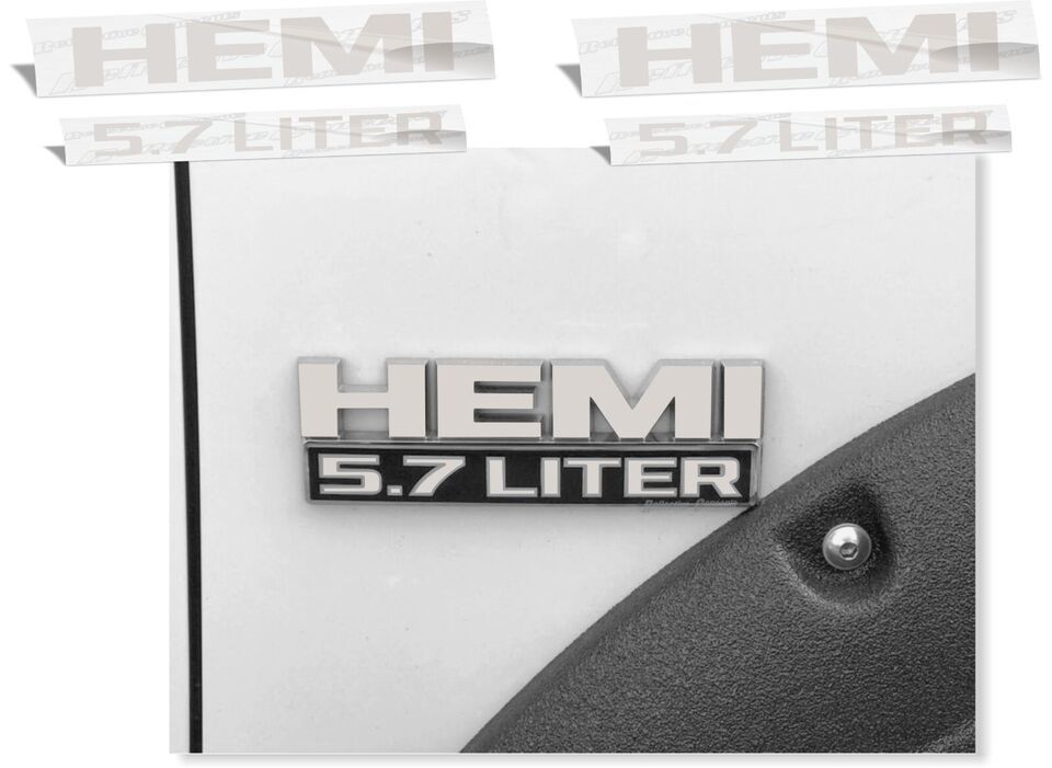 Decals (stickers) sized designed to be applied to the front face of the existing emblems on the fender. Lays on the front face of the HEMI and covers the red section of the 5.7 LITER .. as pictured.