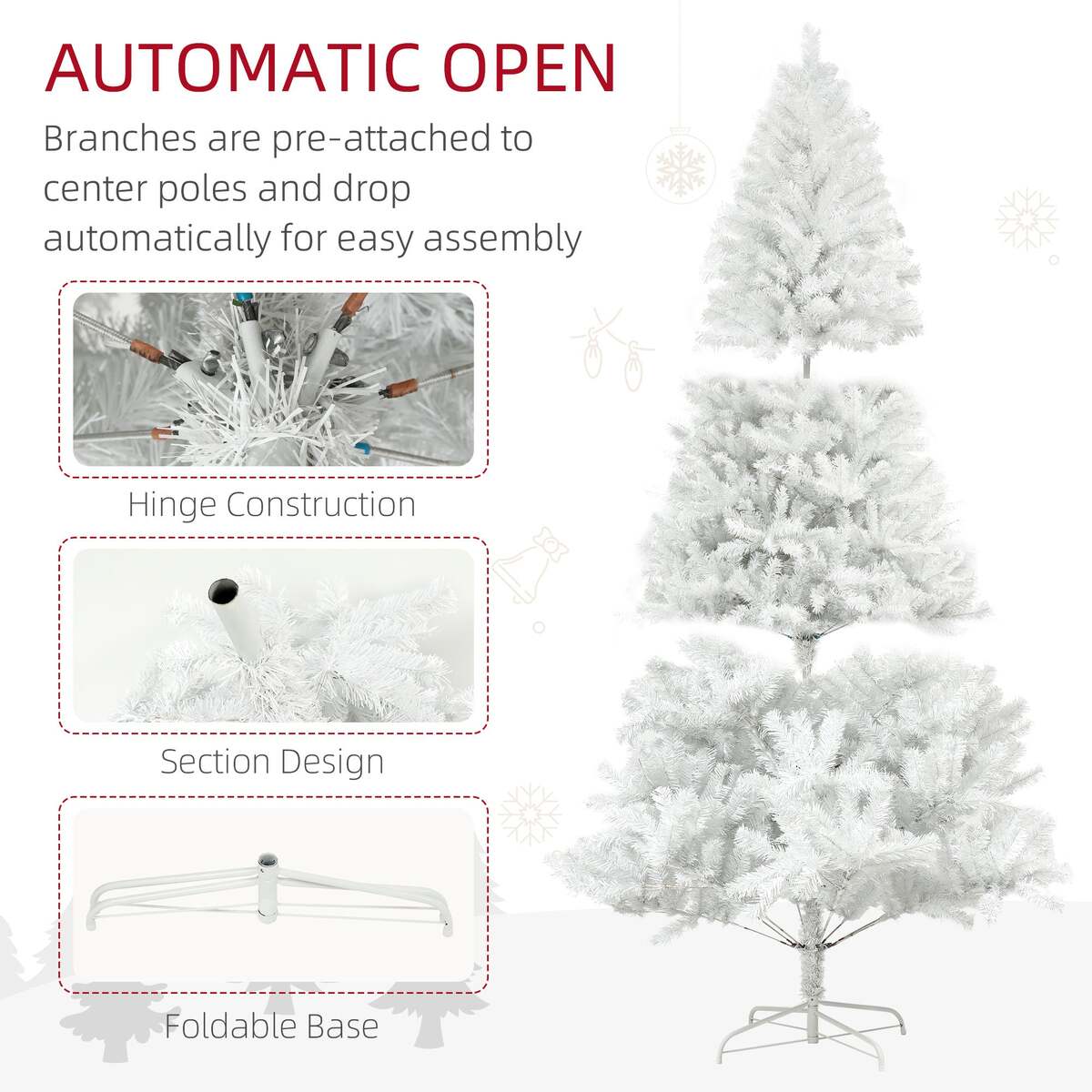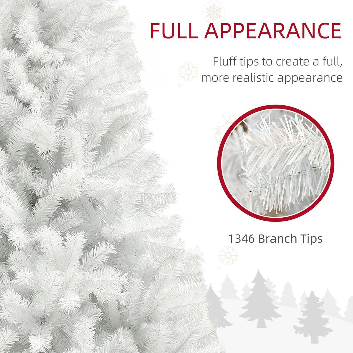 HOMCOM 7.5ft White Artificial Christmas Tree, Unlit, 1346 Tips