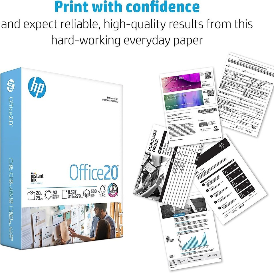 HP Papers | 8.5x11 Paper |Office 20 lb | 1 Ream - 500 Sheets | 92 Bright |