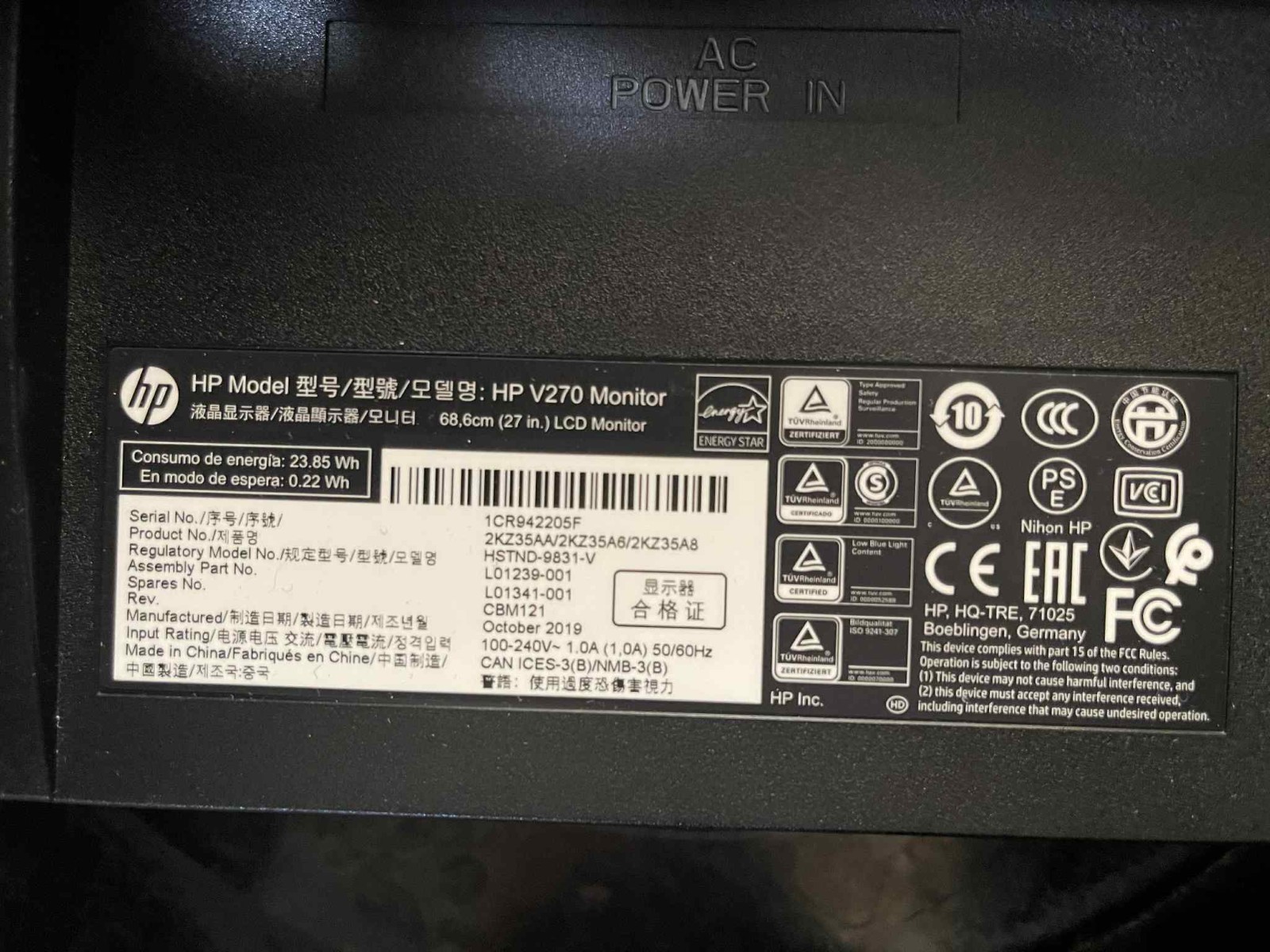 - HP V270 27" LED Backlit Monitor – Used – Tested & Working