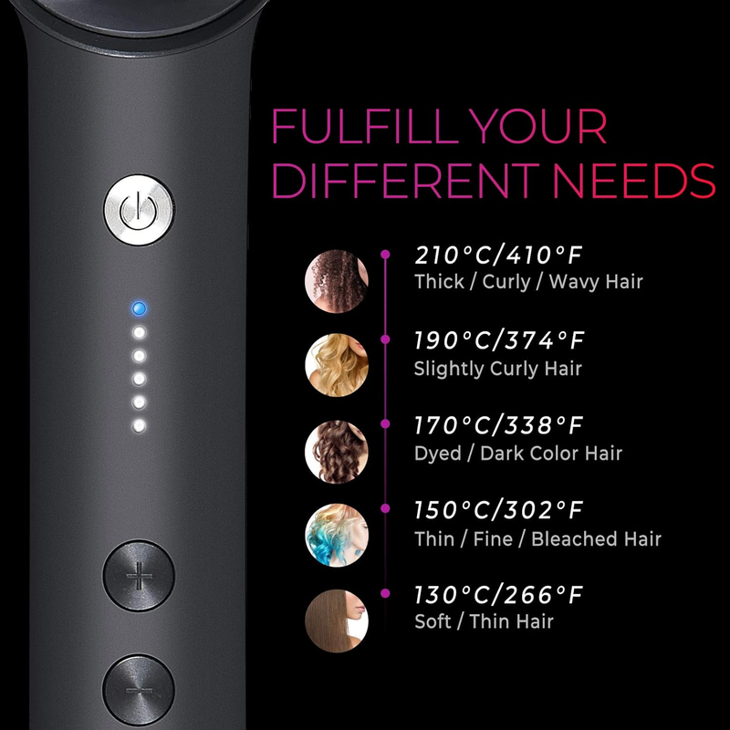 5 Heat Settings for Different Hair Types - The hair straightening brush has 5 temperature settings for different hair types. Heating up in just 20 seconds, the hair brush straightener saves you time during your morning rush.