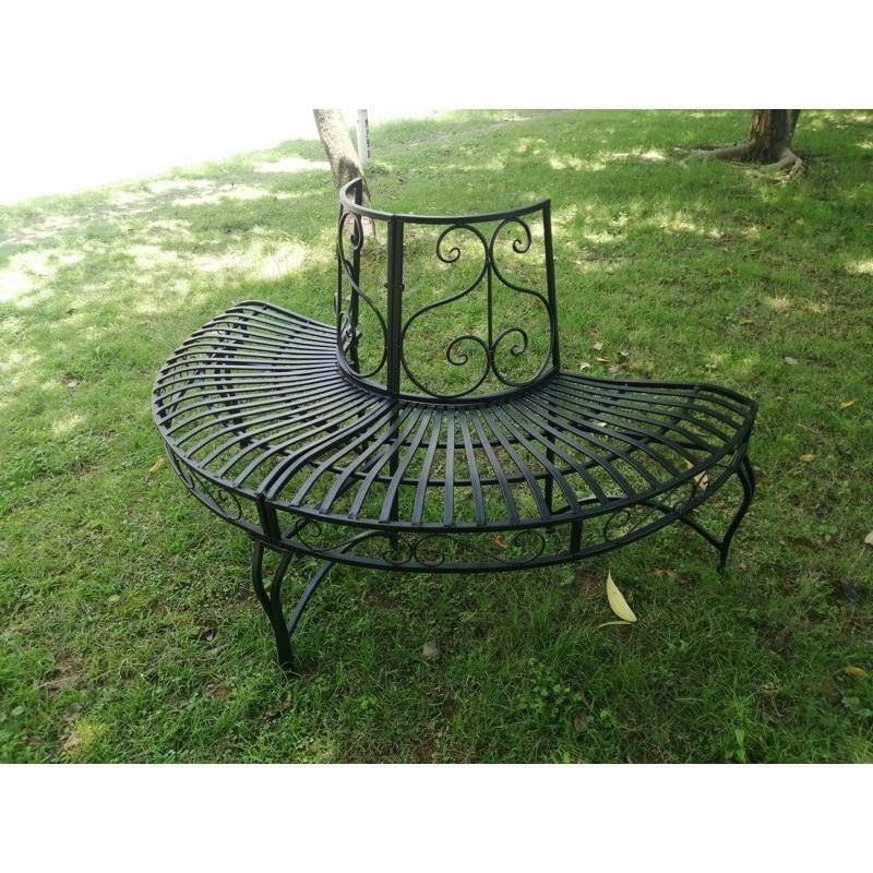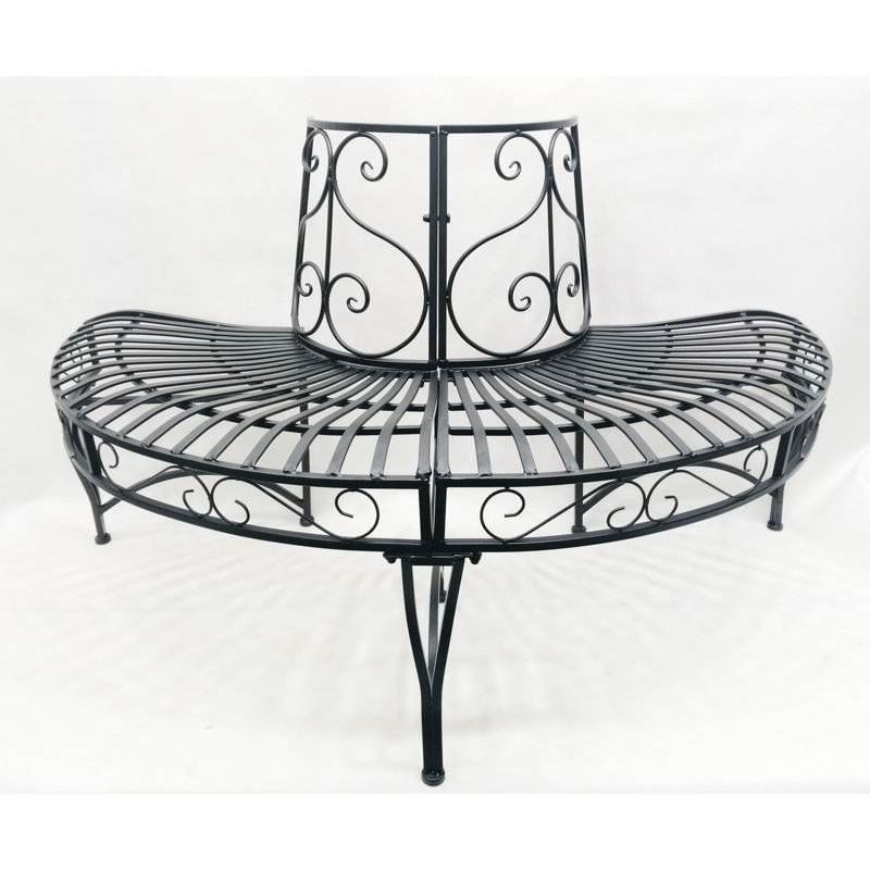- Half-Circle Outdoor Black Powder Coated Aluminum Tree Bench