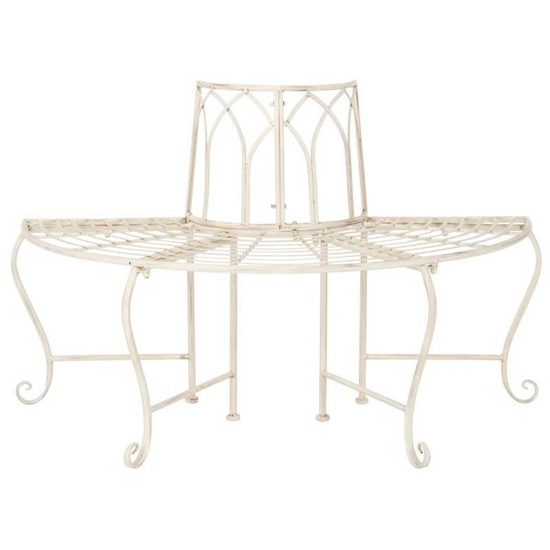 - Half-Circle Outdoor Patio Garden Antique White Wrought Iron Tree Bench