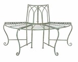 - Half-Circle Outdoor Patio Garden Wrought Iron Tree Bench in Antique Green