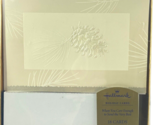 Hallmark Traditional Elegant Understated Christmas Holiday Cards Featuring a heavy cream colored card stock embossed with a pinecone accented with silver glitter. Simple design with a single pinecone in the center of a darker cream border adorned with pinecone needles. Inside sentiment is "May special moments brighten your holiday season." Written in cursive. Approximate card size 8" x 5.5" 18 Cards / 19 Envelopes. Made in USA. Ships promptly. Thank You! 202403 A20P 3 2l