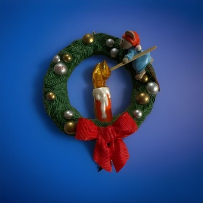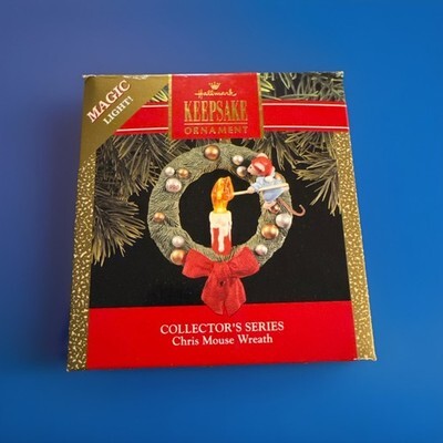 - Hallmark Keepsake Ornament - 1990 Chris Mouse Wreath - Lighted