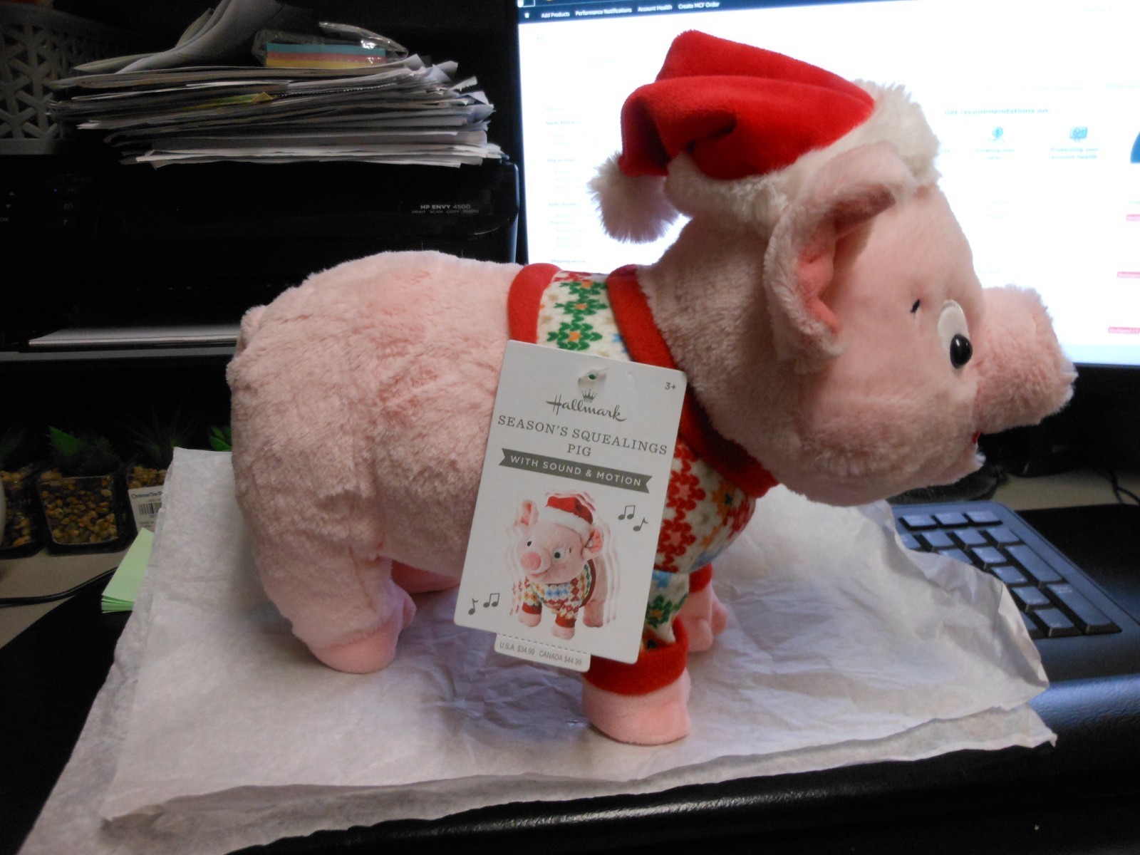 Watch pig wiggle, squeal, oink, snort along to "Jingle Bells." Batteries included.
