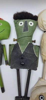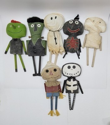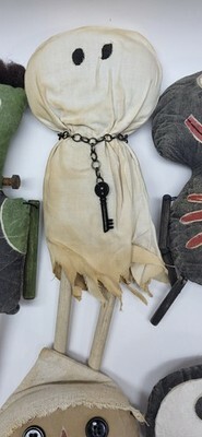 Halloween Decor Folk Art Primitive Style Dolls Witch, Ghost, Skeleton Rag Doll Exactly as seen on photos, fabric, and wood Halloween decoration dolls
