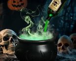 MAGICAL FLOATING POTION - The floating potion bottle hovers above the cauldron, with continuous green water flowing, an eerie green glow emanating, and mystical smoke releasing, filling your space with spooky Halloween magic.