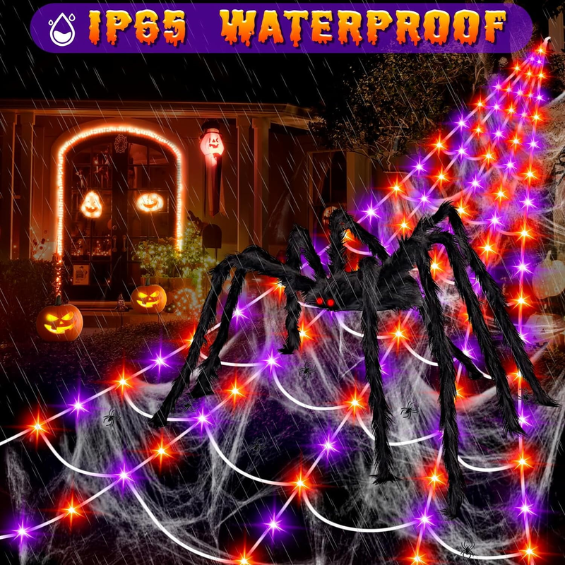 - Halloween Decorations Outdoor, 200 LED Halloween Spider Web with 79" Giant Plast