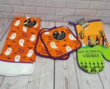 - Halloween Ghost & Gnomes Kitchen 4pc Set - Towel, Pot Holders, Oven Mitt Orange