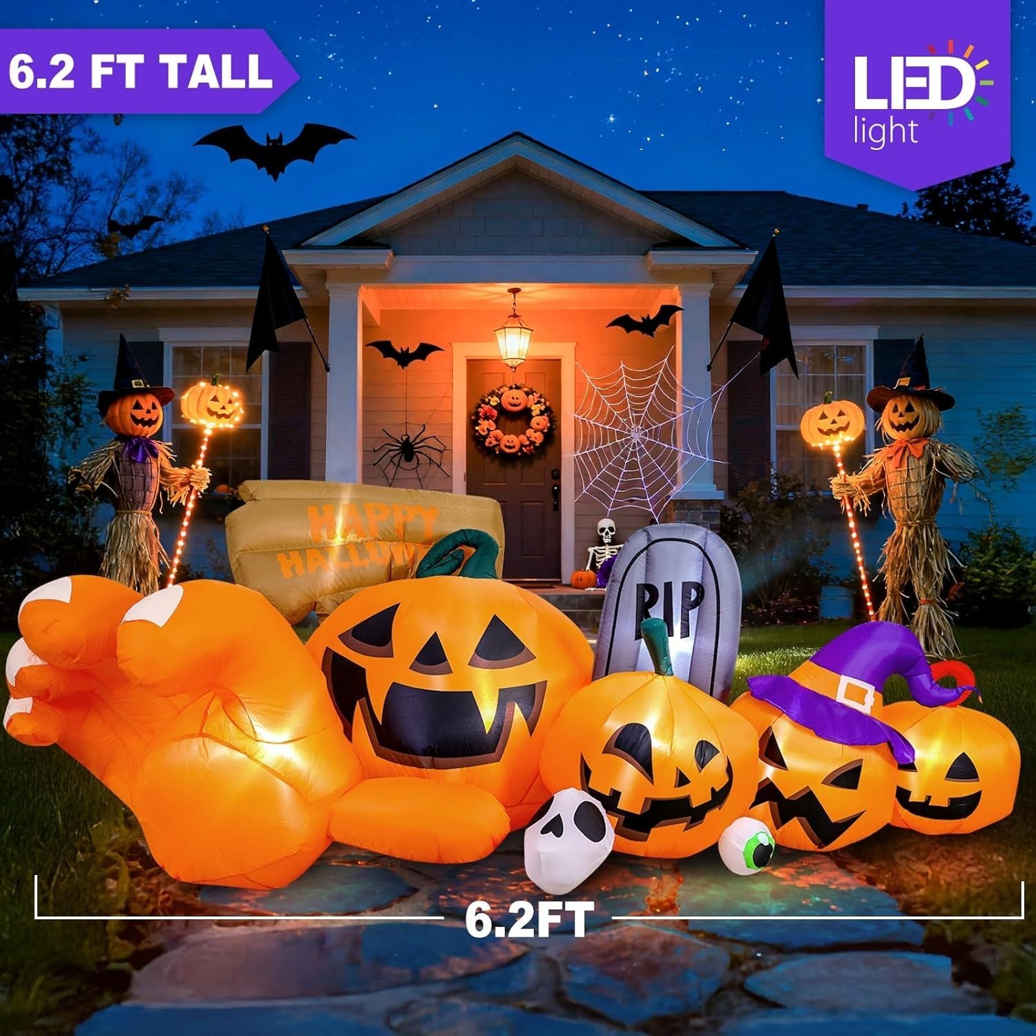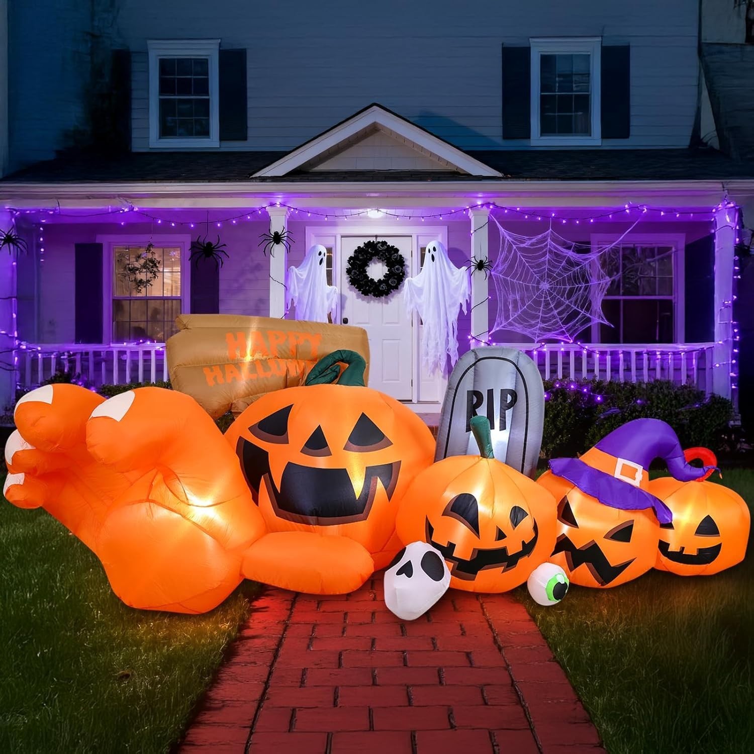 The Inflatable Pumpkin Outdoor decoration features a bright orange color and a quirky facial design, with a huge palm Terrifying Tombstone. I believe it will definitely enhances holiday ttmosphere, instantly elevating the festive spirit of Halloween. Whether placed in your front yard ,garden or indoors, it becomes the focal point for family gatherings, neighbors, and friends, adding a joyful holiday vibe that captivates children.