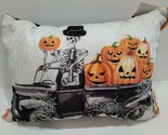 Halloween Skeleton Driving Vintage Truck Pumpkins Throw Pillow Gorgeous! 10"x14"