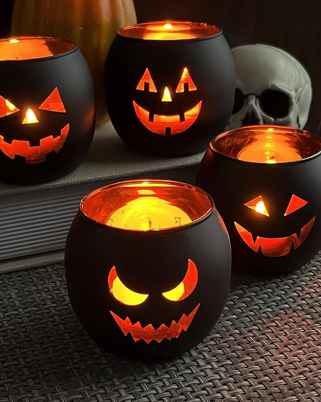 - Halloween Table Decor Set of 6, Jack O Lanterns Black Glass Votive Tealight Cand