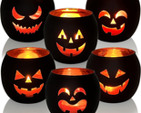 Halloween Table Decor Set of 6, Jack O Lanterns Black Glass Votive Tealight Candle Holders, Halloween Decorations Indoor Party Mantel Coffe Table Centerpiece Decor
