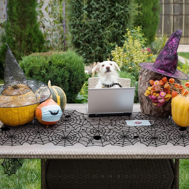 Delicate Halloween Table Runner with Black Lace Spider Web Design,you can use them to decorate your Halloween Dining Table and make it more elegant and stylish.