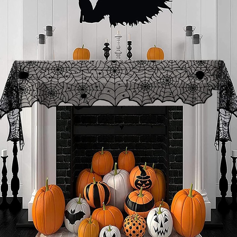 Halloween series table cloths,Black lace spider web design decro Halloween table runner.It can be matched with tableware,tableware,dinnerware,napkins,placemats and other Halloween decorations.And also can be matched with spooky,pumpkin,lantern,ghost,witch,moon,castle,haunted house,broom,carving jack-o-lanterns,spider web.Cool decorations for fun spooky Halloween and Thanksgiving Day.Best choice for fireplace decorations,outdoor decorations front of your house,dining table decorations. You can set the stage for an epic Halloween party with a fun assortment of Halloween.Halloween only comes once a year so you should have fun with it!