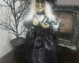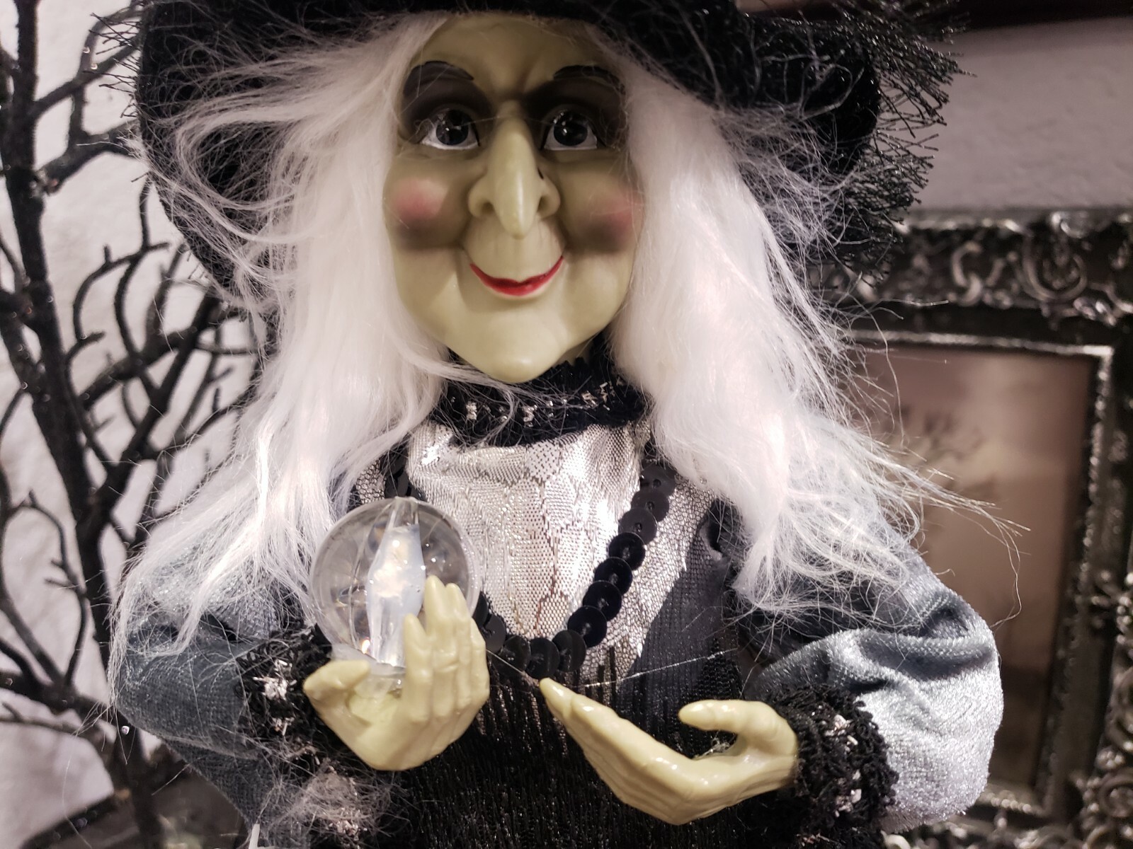 HALLOWEEN WITCH DOLL SHELF SITTER CRYSTAL BALL MANTEL TABLETOP DECOR 17"