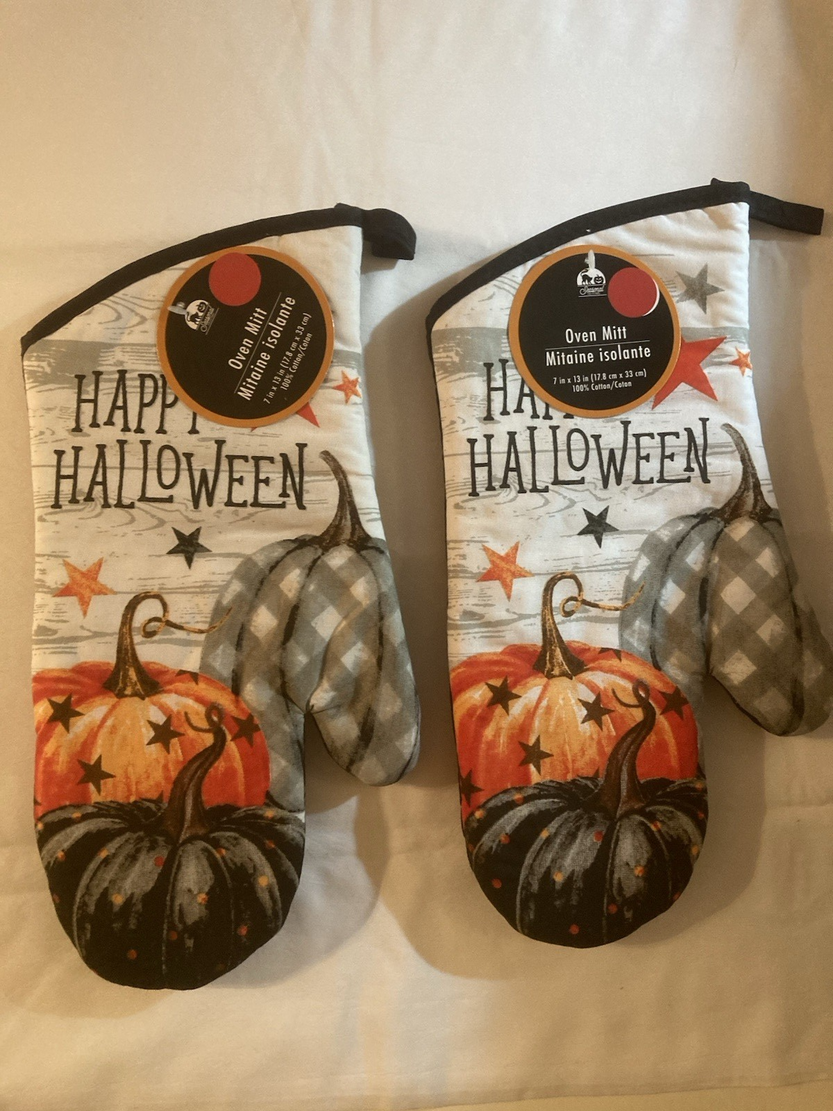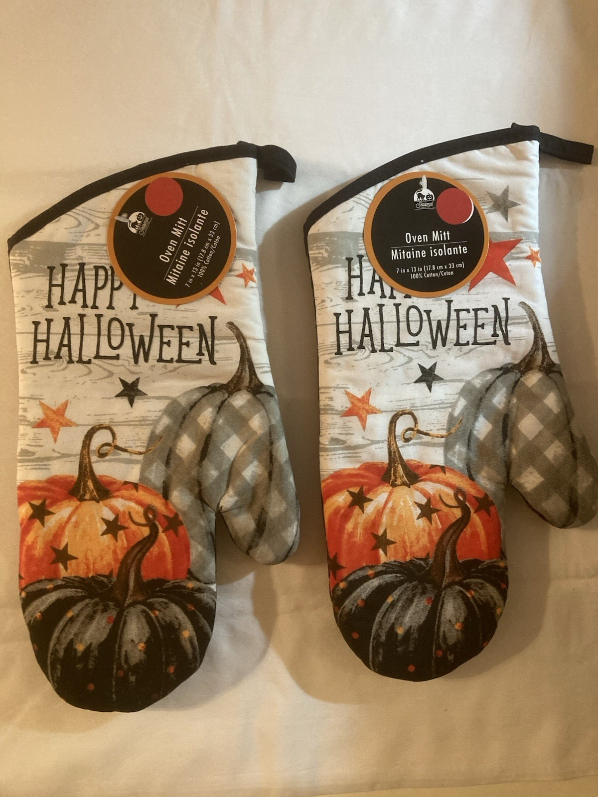 - Halloween kitchen 2 pc set oven mitt pumpkins Seasonal Collection