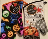 Halloween kitchen 2 pc set oven mitt skeleton cat bat web spider pumpkins