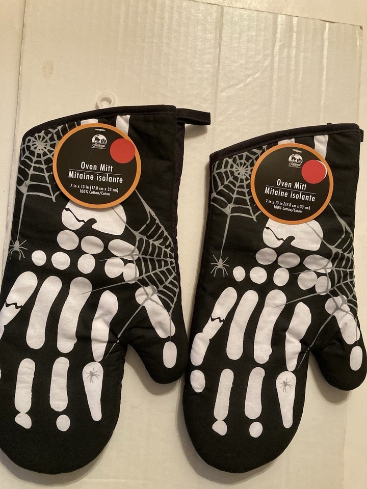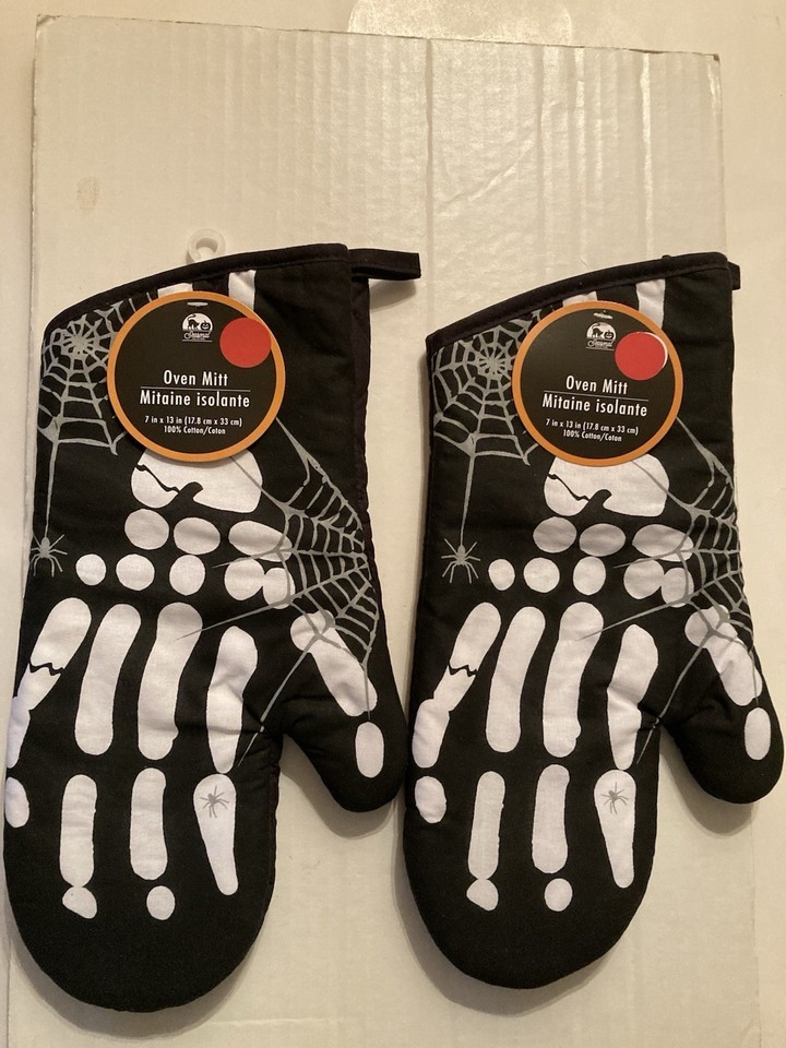 - Halloween kitchen oven mitt skeleton hands 2 pc set Seasonal Collection black