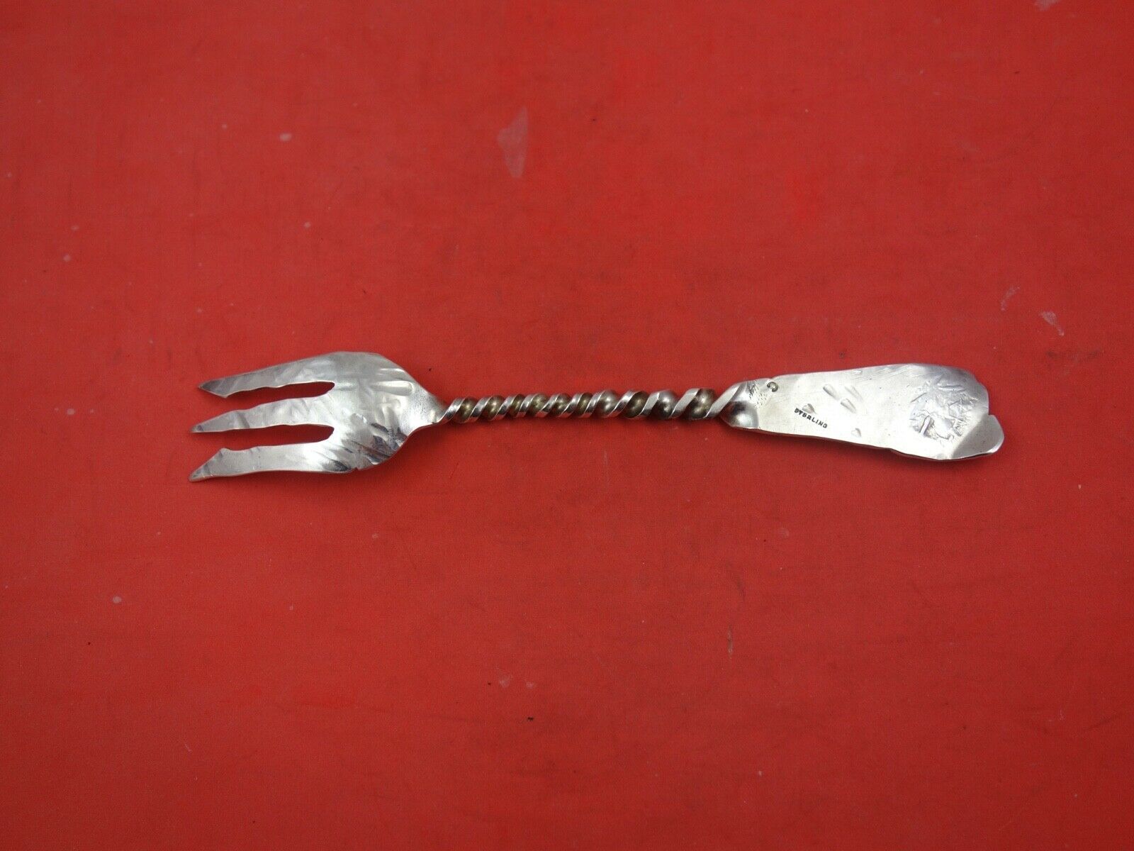 Sterling silver Salad Fork 3-tine with a crab 6 1/8". It is in the pattern Hamburg by Gorham. It is not monogrammed and is in excellent condition.