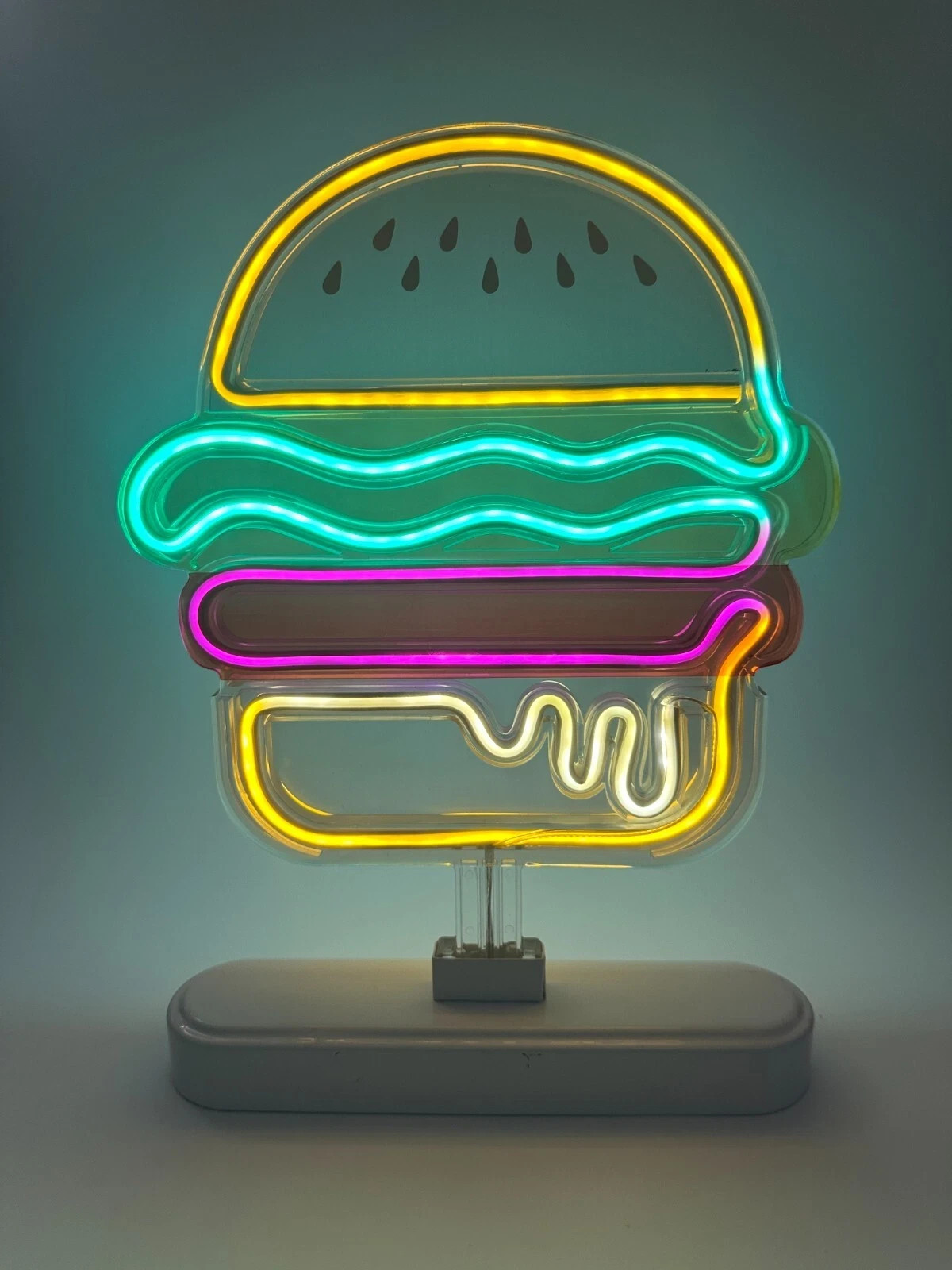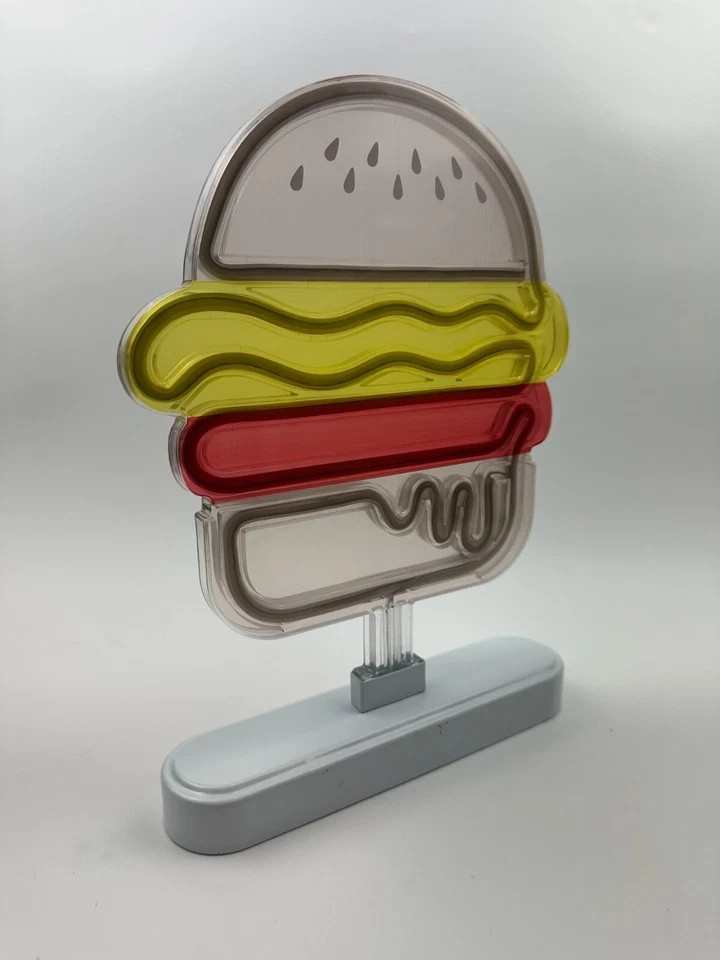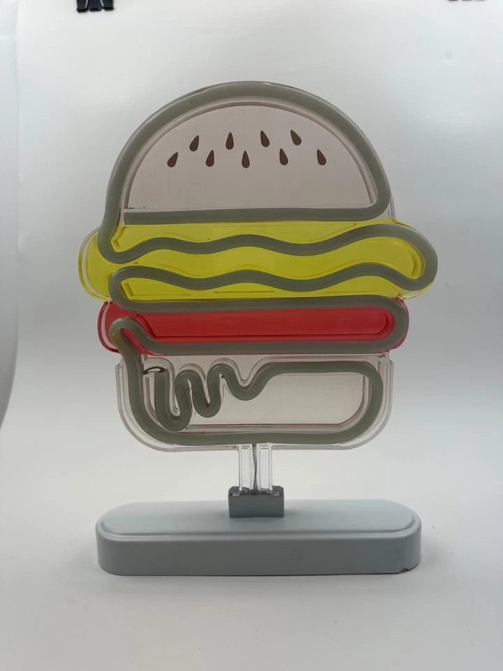 Hamburger Cheeseburger Acrylic Tabletop Neon Sign Lamp Battery Operated 12"