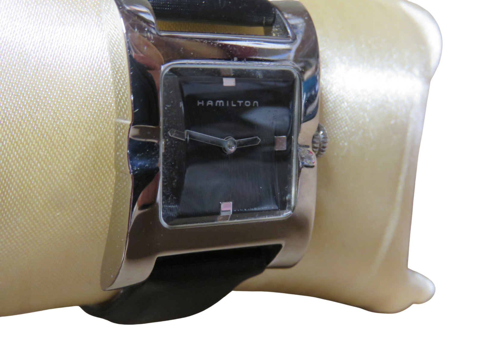 - Hamilton Women 000150 Lorna Black Leather Square Quartz 25mm Watch