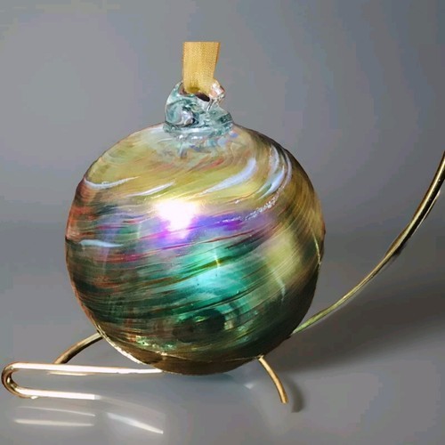 - Hand Blown Art Glass Colorful Swirl Orb Witch Ball Sphere Ornament w/Ribbon #3
