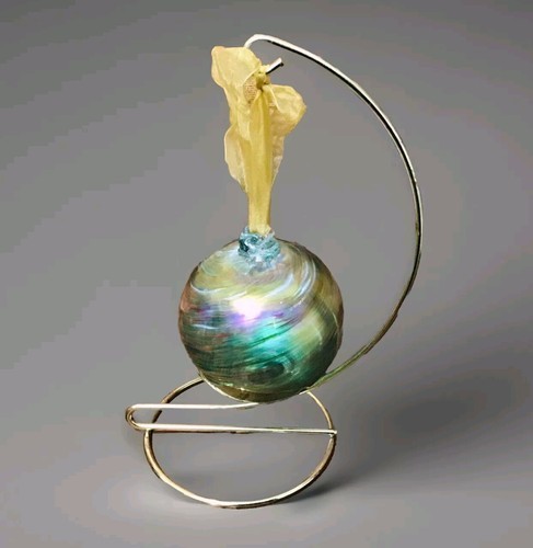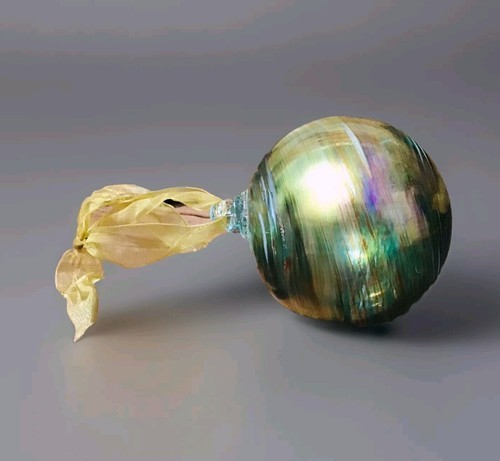 Crafted by an unknown artist from blown glass, this USA-made ornament is a one-of-a-kind item.