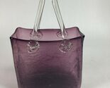 Hand Blown Crackled Glass Purple Amethyst Purse Decorative Vase. In good condition. Item measures 11?Hx7.25?Lx4?W