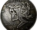 This hand-carved Hobo Nickel Skull Fantasy Coin is a unique work of art inspired by the traditional Hobo Nickel coins that emerged in the United States in the early 20th century. Originally, these were standard dollar coins transformed by engravers into exceptional artistic pieces. This particular example features the iconic imagery of a skull and skeleton replacing the classic depiction of Liberty, adding a mystical and gothic character to the coin. Preserving the original inscriptions such as "LIBERTY" and "IN GOD WE TRUST," the design is distinctively reimagined, making it not only a modern rendition but also a collectible art piece that appeals to both numismatists and lovers of alternative art and gothic aesthetics. The creation of such coins serves as a nod to the age-old tradition of handcrafted coin engravings, popularized by vagrants and artists during the Great Depression.Each piece is an original, with every detail being unique due to the intricate handcrafting process. This coin is an excellent addition to any collection and serves as a fascinating gift for enthusiasts of unconventional numismatics. With a diameter of 38 mm and a thickness of 2.5 mm, this extraordinary piece stands out as a testament to creativity and craftsmanship.
