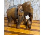 Hand Carved Wooden 9" Elephant Mother Baby Figurine Statue Made in Thailand