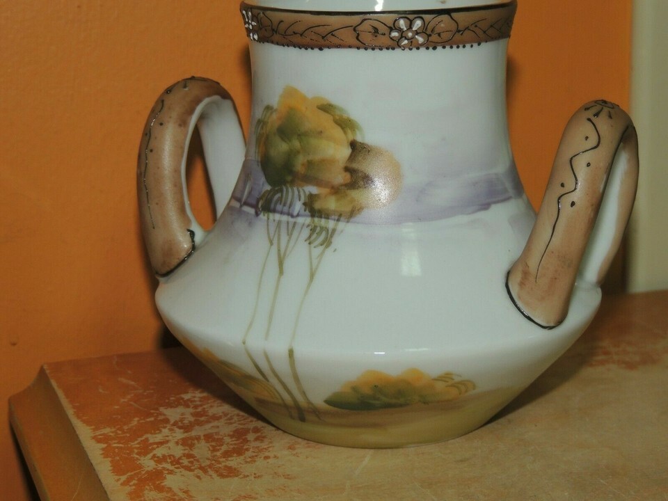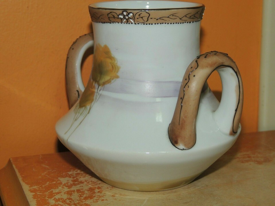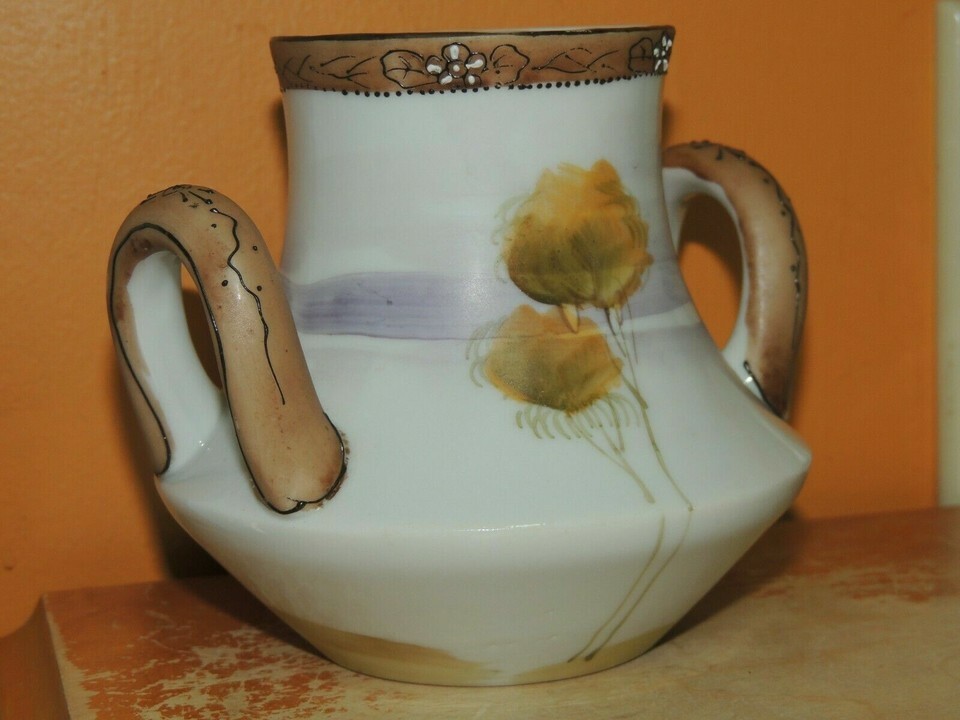 ONE VASE MARKED "HAND PAINTED JAPAN". PLEASE LOOK AT THE PICTURES CAREFULLY. APPROXIMATE SIZE IS 4.25 INCHES TALL BY 5+ INCHES WIDE (INCLUDING THE HANDLES). SHIPPING IS BASED ON THE APPROXIMATE PACKAGED WEIGHT. I DO SHIP INTERNATIONALLY. USPS SHIPPING IS ONLY AVAILABLE WHERE TRACKING IS OFFERED, ALL OTHERS MUST BE SHIPPED FEDEX OR UPS. ALL TAXES, TARIFFS AND DUTIES ARE THE RESPONSIBILITY OF THE BUYER. RETURN POLICY: IF THE ITEM YOU RECEIVE IS IN SOME WAY MATERIALLY DIFFERENT FROM WHAT IS REPRESENTED HERE, I WILL GLADLY REFUND YOUR MONEY. MONEY WILL NOT BE REFUNDED BECAUSE OF MINOR FLAWS OR MISUNDERSTANDINGS. YOU MUST CONTACT ME PRIOR TO RETURNING ANY ITEM. IF THE ITEM IS NOT AS DESCRIBED, I WILL REFUND THE FULL PRICE, PLUS SHIPPING AND RETURN SHIPPING. This listing created with GLETech Multiple Selling Channel tools.
