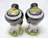 Primary image for Hand Painted Puffy Bird Salt Pepper Shakers Purple Yellow Green 2 1/4 Japan