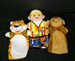 Hand Puppet Handyman Helper Monkey And Tiger Lot Of 3 Plush Stuffed Animals