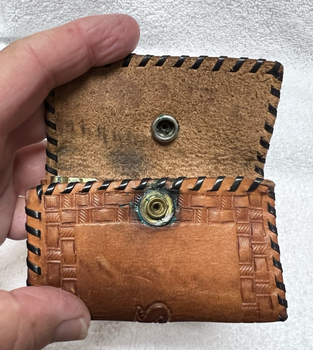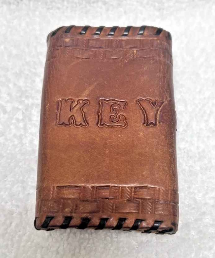 Hand Tooled Leather Key Case Holder Folding 3 3/8 x 2 1/8 folded