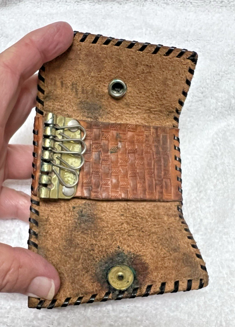 Hand Tooled Leather Key Case Holder Folding 3 3/8 x 2 1/8 folded Used but years ahead of it