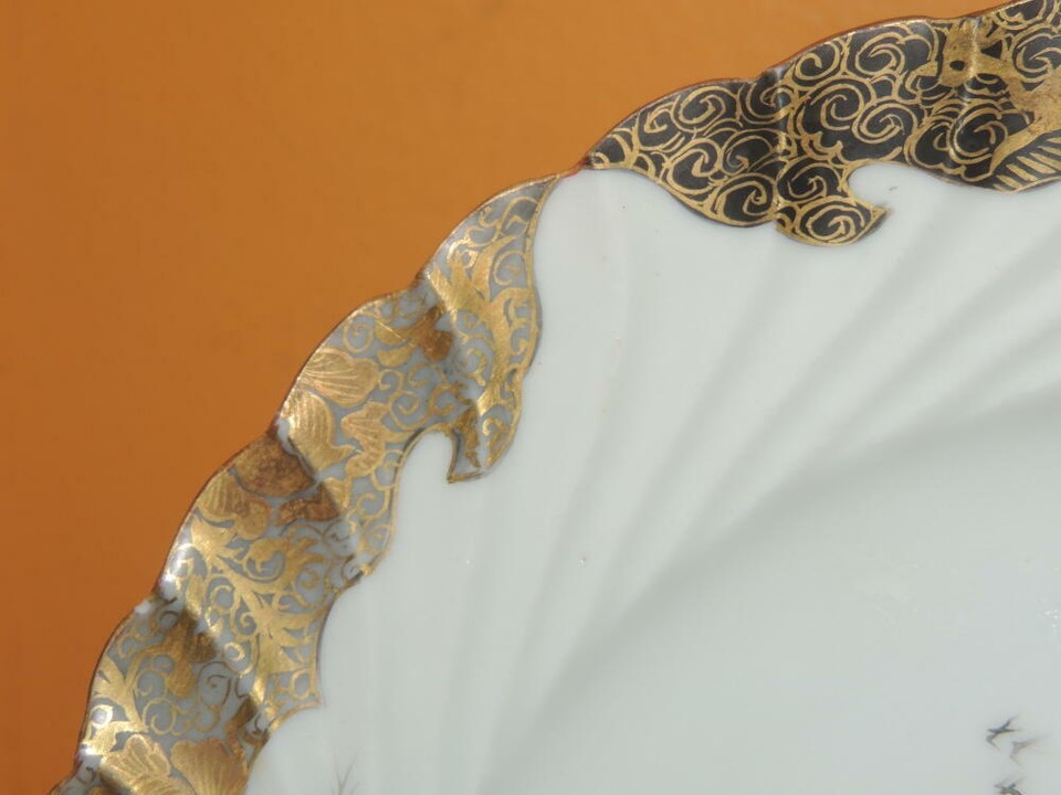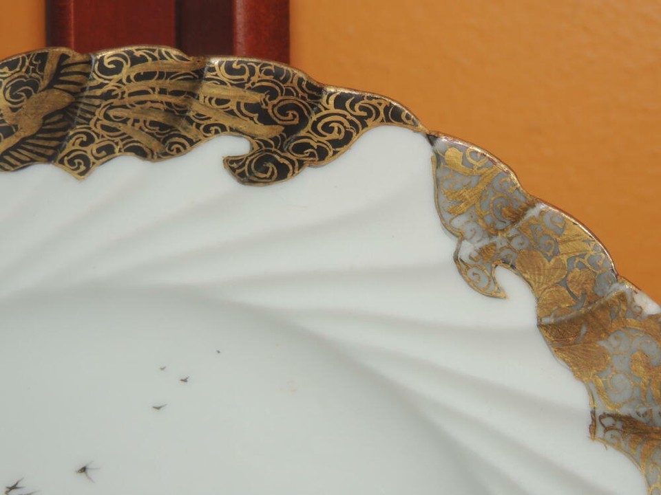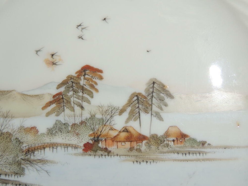 - Hand painted 7.5" Plate China gold black fishing village poss Kutani Antique 2