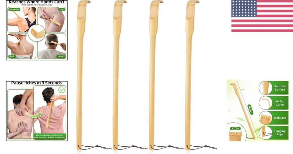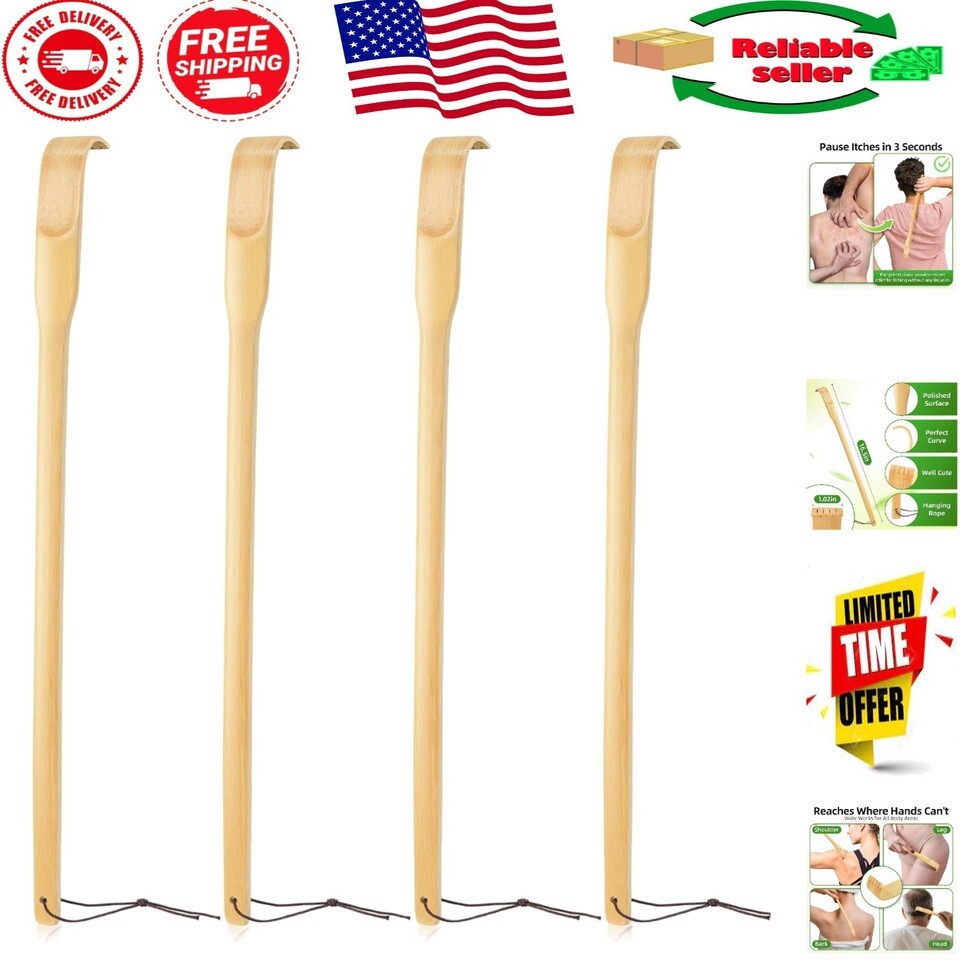 Handcrafted Bamboo Back Scratcher - 4-Pack Long Massager for Family & Friends