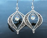 - Handcrafted Silver Dangle Earrings | Blue Gemstone Drop | Elegant Swirl Design