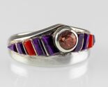 Gorgeous Sterling Silver Band Ring with a mix of Purple Spiney, Coral and Morganite Center Stone.