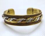 Handmade Boho Tri-Metal Cuff Bracelet – Brass Copper Silver Tone Tribal Design