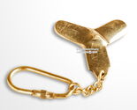 This is the Handmade Brass Miniature Titanic Ship Propeller Key Chain. This is a replica of a ship's propeller with three blades.