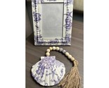 Bring a touch of coastal charm to your home with this matching set. The 4x6 wooden beaded picture frame features a unique coastal decoupage design, perfect for displaying your favorite memories. Paired with a coordinating wooden beaded tassel accented with a ceramic charm, this set makes a beautiful statement on a table, shelf, or gift box. The color is more of a periwinkle. it is A soft blue-purple color. Handmade coastal design Frame holds 4x6 photo Matching beaded tassel with ceramic charm (beaded tassel approximately 10 1/4" and Charm is approximately 4 1/4") Total length is approximately 14 1/2. Coastal Decor, Nautical Decor, Cottagecore, Beach House, Handmade Gift.