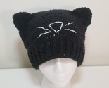 - Handmade Crochet Black Cat Ear Beanie with Whiskers