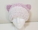 Handmade Crocheted Velvet Cat Ear Beanie Hat in Pink White Two-Tone style! Hat is made from very soft 100% polyester velvet yarn. Perfect for a gift or to keep you warm and cute!